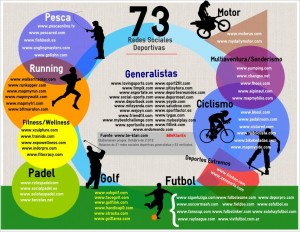 En esta interesante infografía, vía @BeKlanEs, podemos observar 73 Redes Sociales exclusivas del mundo del deporte, tanto las que se dedican a los deportes en general o aquellas específicas de diferentes deportes, os animamos a darle una ojeada porque merece mucho la pena.