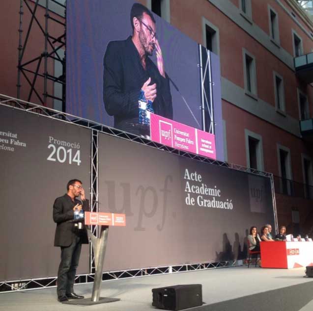 El padrino de la promoción fue el Consejero y anterior Director General de la cervecera Moritz, Albert Castellón, que destacó la importancia de la marca personal dentro del panorama actual del mercado de trabajo al igual que los valores y la lucha por diferenciarse del resto a través de la creatividad entre otros aspectos. Posteriormente fue el turno de entrega de los diplomas a todos los estudiantes con el discurso de clausura del rector de la Universidad.