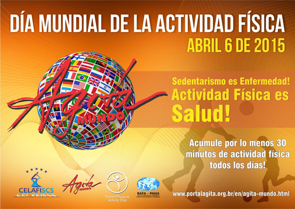 El 6 de abril es el Dia Mundial de la Actividad Física según fue designado por la Organización Mundial de la Salud (OMS) con el objetivo de promover los beneficios de salud que aporta la práctica regular y continua de la actividad física por lo menos 30 minutos diarios.