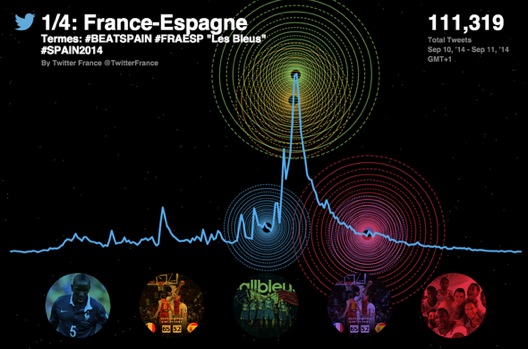 Ayer finalizó el Mundial de baloncesto que se ha disputado en España desde hace dos semanas y con un fracaso deportivo evidente de la selección española que cayó repentinamente y de una forma muy justa en cuartos de final con la selección francesa. En la imagen del post se puede ver la evolución que tuvo el partido en las Redes Sociales, Twitter concretamente, y los momentos en los que hubo una interacción más intensa por parte de los aficionados.