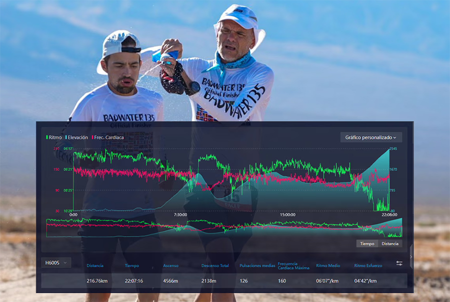 Además del calor, Badwater también presenta el reto de la altitud. Dado que Valencia se encuentra al nivel del mar, Iván decidió viajar a Las Vegas, una ciudad cercana a la cuenca de Badwater, situada a 650 m, pero con picos cercanos de 3000 m. «Allí pudimos hacer un breve periodo de adaptación a la altitud, además de competir en una carrera de 50 km a 1500 m sobre el nivel del mar, lo que nos proporcionó mucha información para terminar de ajustar el plan».