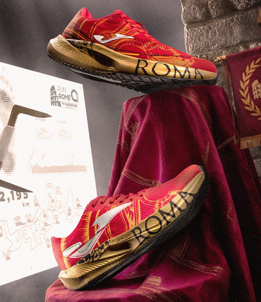 El diseño de la edición especial de Joma x ACEA Run Rome The Marathon se inspira en los símbolos más representativos del Imperio Romano. El color rojo, protagonista del upper de las dos zapatillas, hace referencia a los estandartes romanos, los mantos de los comandantes y al color del poder, la fuerza y la determinación. Un tono que transmite carácter, liderazgo y espíritu competitivo.