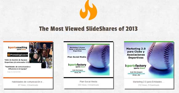 En este enlace se puede ver toda la actividad que hemos generado durante 2013 en mi espacio de slideshare (repositorio de presentaciones de ponencias, cursos, etc…) con las diferentes presentaciones que hemos querido compartir y que son las correspondientes a las presentaciones comerciales de isportsfactory e isportscoaching y todas aquellas de los cursos sobre diferentes materias que hemos impartido durante el año pasado.